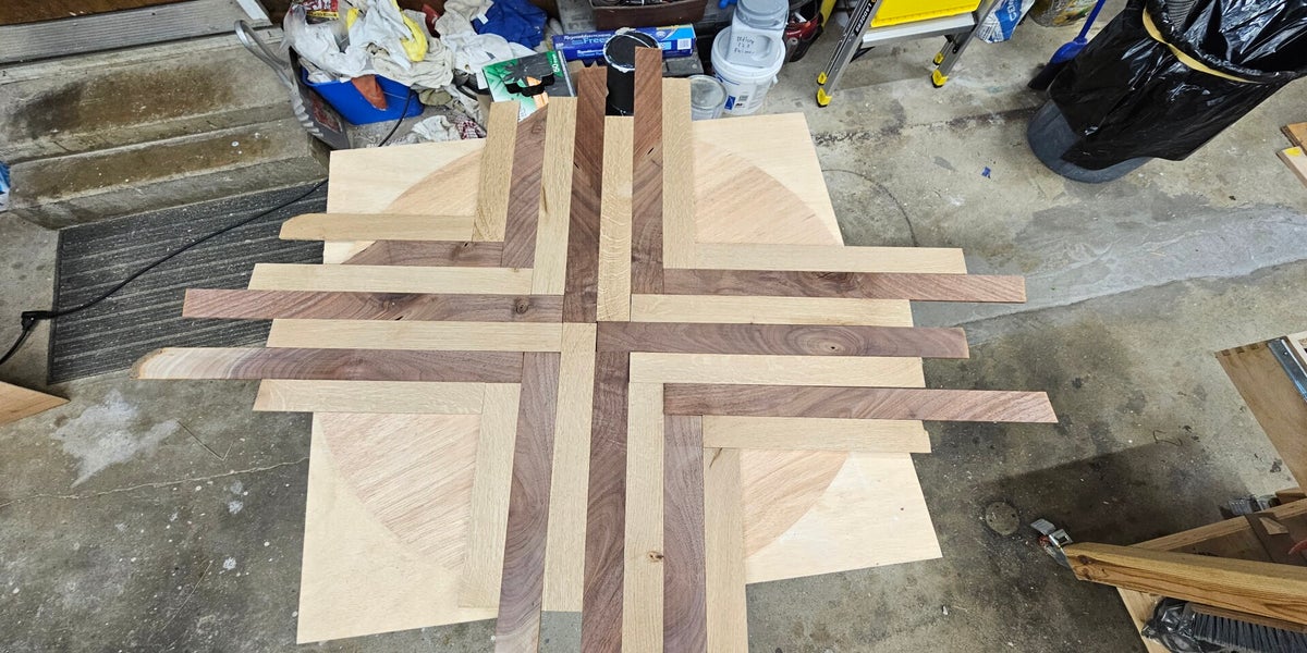 This custom "card table" style Puzzle Table features a herring bone wood inlay and spinning top, making it easier to work on those 1000 piece puzzles.